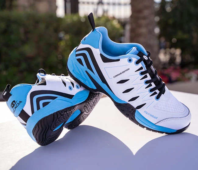 Designed by Corrine Carr and Acacia with the needs of Champion athletes in mind, the Acacia Corrine Carr Signature Edition is Acacia’s first ever pickleball shoe available in standard women’s sizing. The first ever Signature-shoe created for the sport of pickleball and is Acacia’s lightest and most agile pickleball shoe to date. The Upper is constructed of ProFlex material, an elasto-polymer fiber membrane that frames the shoe with a flexible, comfortable support structure. Thermally bonded and stitched wrap-around drag guard made from high grade leather. Micro-honeycomb (MicroHC) mesh material provides breathability for improved air flow and ventilation above toes. Heel Control Stability (HCS) provides an exceptionally strong heel counter to ground movements and to support ankles and heels during rapid lateral movements. Durable ballistic nylon inner lining.