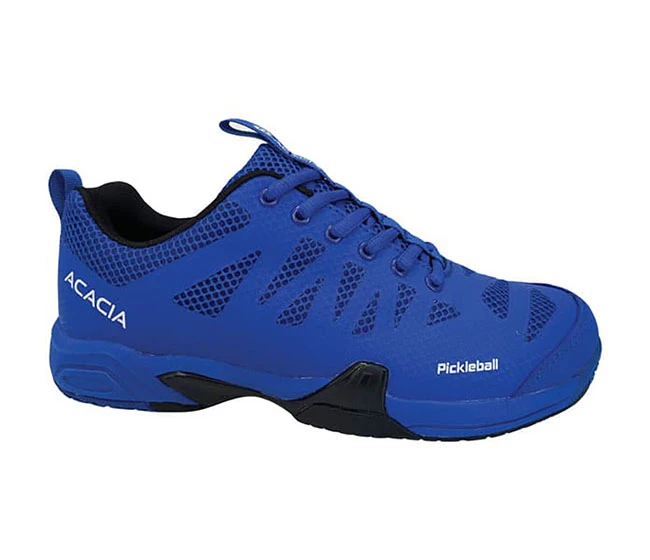Acacia ProShot pickleball shoes are built with a honeycomb ballistic nylon upper for ankle support and arch support to protect feet from rolling on the court. Acacia ProShots feature a wide-width toe box and anti-wear high-abrasion contoured outsoles with higher drag guards, which enable quick lateral movements while delivering unparalleled support and traction during play. The shoe outsole is non-marking light weight natural rubber with elevated gel-injected heels to leverage and control, while the honeycomb gel silicone insoles with antimicrobial lining provide cushion, shock absorption and odor control. SK-Vent design allows for better air circulation to keep your feet comfortable and ventilated for long hours of play.