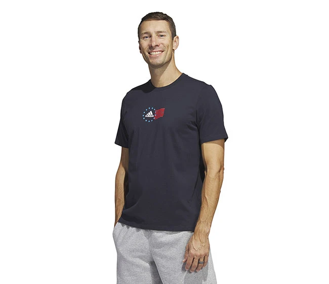Team USA. You might not be so subtle about your favorite sports teams, but this adidas t-shirt keeps things a little more mellow with an adidas Badge of Sport filled in with blurred red, white and blue. Though even when blurred, it’s still pretty undeniable. All adidas’ cotton products support more sustainable cotton farming.
