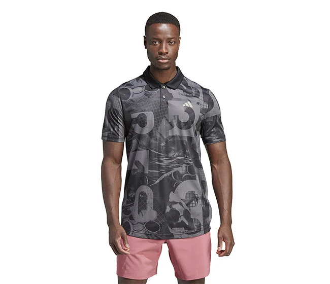 Created to help you look and feel the part, hit after hit. The eye-catching, tennis-inspired graphic covering this adidas Club polo will ensure you make your point on the court. Behind the scenes, AEROREADY wicks moisture and underarm gussets give your arms room, so you can back up your bold look with some big hits.Made with 100% recycled materials, this product represents just one of our solutions to help end plastic waste.