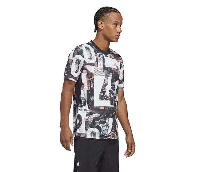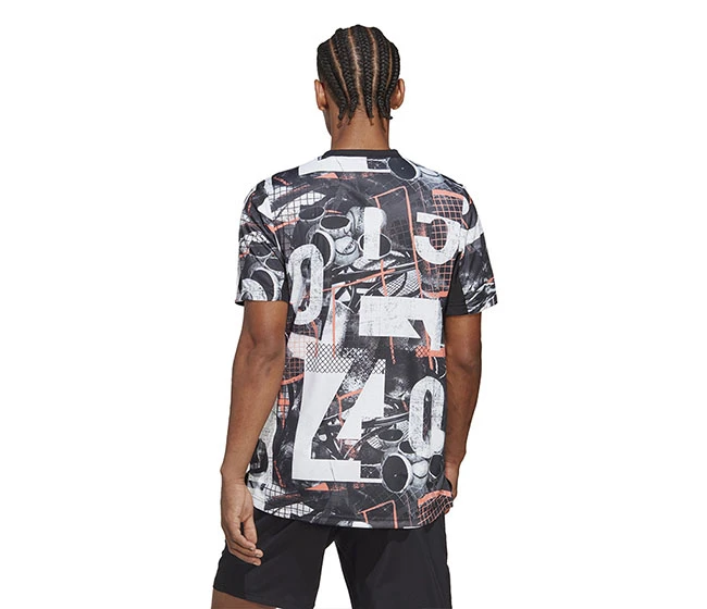 Created to help you look and feel the part, hit after hit. The dynamic, tennis-inspired graphic covering this adidas Club tee will ensure you make your point on the court. This top includes extra fabric under the arms to give your shoulders more room for big hits. AEROREADY wicks moisture to keep you comfortable through all-action play.Made with 100% recycled materials, this product represents just one of our solutions to help end plastic waste.