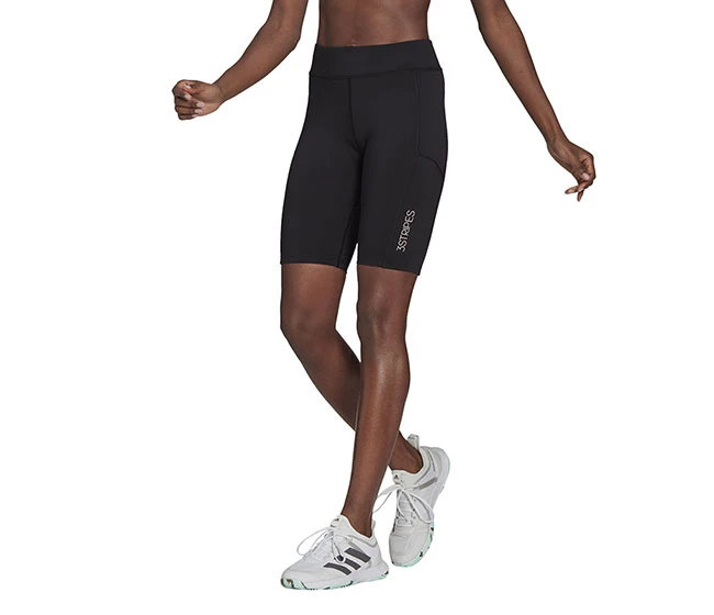 Cycling shorts influence the design of these stretchy adidas tennis tights. Their opaque fabric will give you total confidence on court while side pockets add storage for spare balls. The wide waistband and sweat-wicking AEROREADY will keep you comfortable right up to game, set and match. This product is made with Primegreen, a series of high-performance recycled materials.