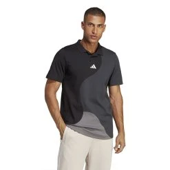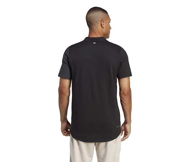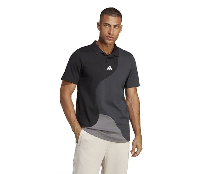 A bold look bouncing with tennis DNA. The undulating design on the front of this adidas polo shirt takes inspiration from the curved seam of a tennis ball. Part of the forward-thinking Clubhouse collection, this polo can be worn on and off the court. Its droptail hem is designed to keep you covered through big hits. Moisture-wicking AEROREADY adds confidence to your play.