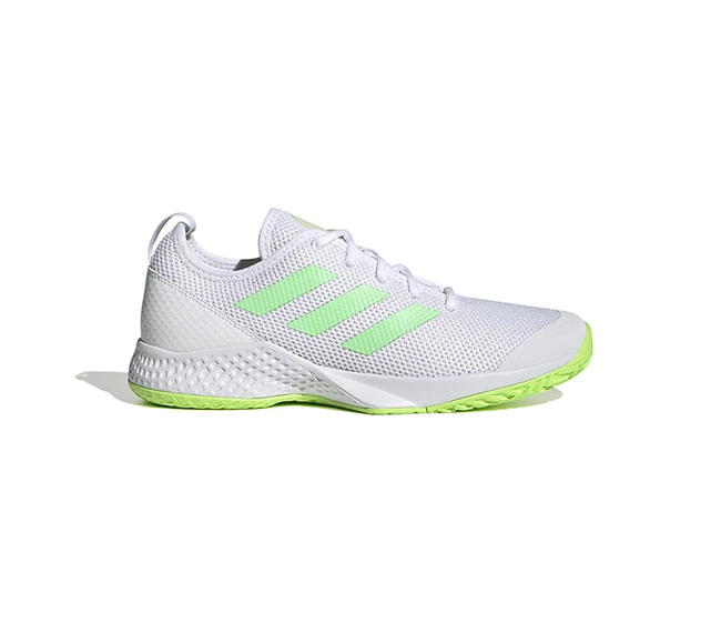 Shift your game up a gear. The lightweight mesh upper on these adidas tennis shoes is designed to keep you one step ahead of your opponents. A textured heel counter locks you in for every sprint, while the EVA midsole helps cushion landings. Underneath, a grippy Adiwear outsole keeps you in control on hard courts. Made with a series of recycled materials, this upper features at least 50% recycled content. This product represents just one of our solutions to help end plastic waste.