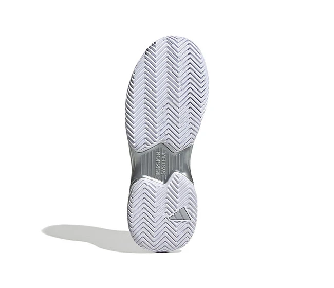 Master the courts in these women’s adidas tennis shoes. Sitting on a flexible Bounce midsole, their breathable mesh upper keeps you comfortable while you take charge of every game. Underneath, a non-marking hard court outsole and stabilizing Torsion System work together so you stay in control of every sidestep and slide. This shoe is made with high-performance recycled materials and features an upper made with 50% recycled content.