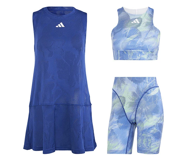 Created for the Southern Hemisphere’s most prestigious tennis tournament, this dress highlights a brand-new approach to carbon recycling. Built using yarn that includes captured industrial emissions, it also has moisture-absorbing AEROREADY and a shoulder-freeing racerback design, so you’ll stay confident hit after hit. Layered over the bra and tights, the dress’ mesh fabric helps mask your shoulder movements so the element of surprise is always on your side.