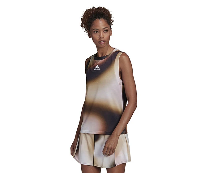 Show your colours as you play for the oceans. Made in part with Parley Ocean Plastic, this adidas tennis tank top belongs to a vibrant collection highlighting the consequences of climate change. Designed to stand out on Melbourne’s courts, its stretchy fabric and sleeveless silhouette ensure nothing gets in the way of your swing. Moisture-wicking AEROREADY keeps you dry, confident and in control.