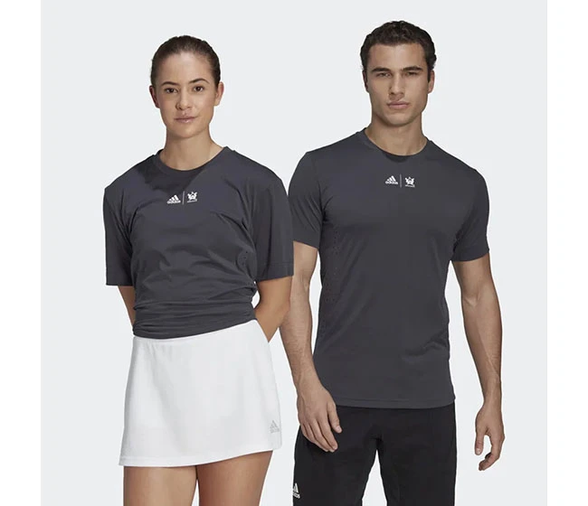 Designed in collaboration with South African fashion brand Thebe Magugu for North America’s biggest tennis tournament. On the back of this adidas tee, a bold graphic of a dancing woman exudes optimism. Created for all-action play, this top has a slim, streamlined fit, moisture-absorbing AEROREADY and breathable mesh details. This tee is made with natural and renewable materials as part of our journey to design out finite resources and help end plastic waste.