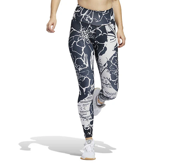 Forget basic black. What your workout wardrobe needs is a wake-up call. A bold floral print brings fresh energy to these adidas high-rise training tights. Slick four-way stretch fabric supports your every move. AEROREADY helps keep you dry as you pick up the pace and pile on the reps.