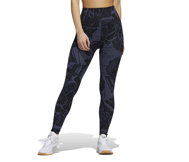 Forget basic black. What your workout wardrobe needs is a wake-up call. A bold floral print brings fresh energy to these adidas high-rise training tights. Slick four-way stretch fabric supports your every move. AEROREADY helps keep you dry as you pick up the pace and pile on the reps.