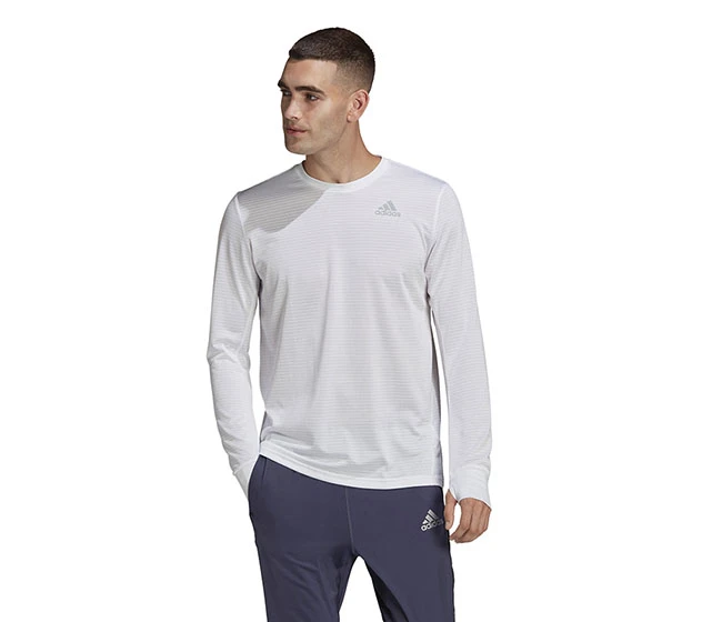If dusk and dawn are your favorite times to run, you’ll appreciate the long sleeve coverage of this adidas running t-shirt. Thumbholes hold the sleeves comfortably in place. AEROREADY absorbs moisture so you always feel your best — no matter your distance or pace. Made with 100% recycled content, this product represents just one of our solutions to help end plastic waste.