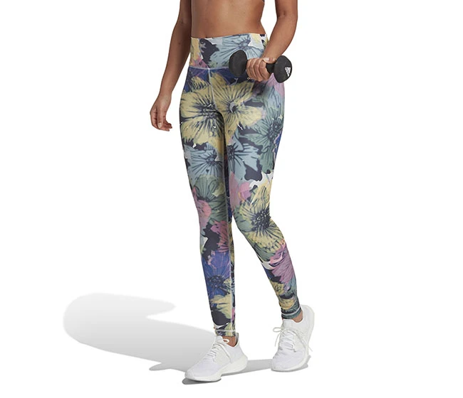 Your legs power your go-getter life. Show your gratitude by wrapping them in these soft, sleek adidas tights with a radiant flower print. Thoughtfully constructed with a high waist and fewer seams, you’ll want to keep them on for hours after your workout ends. No need for a wardrobe change. Just pull on a sweater, long tee or tunic and layer with a jacket for a casual look. Made with a series of recycled materials, these tights represent just one of our solutions to help end plastic waste.