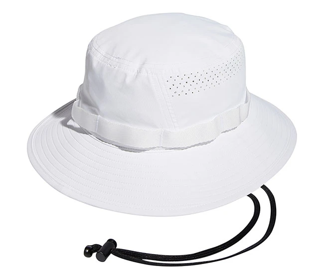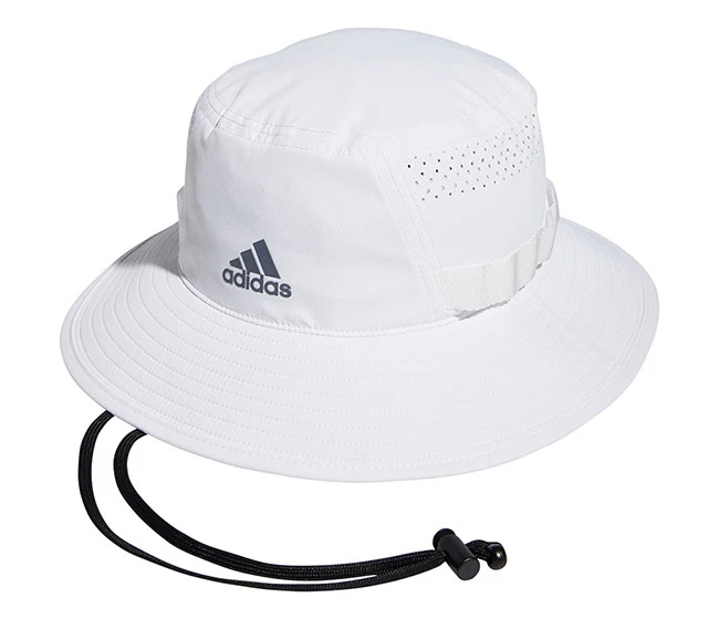Keep covered on sunny days in this men’s adidas bucket hat. Engineered perforations keep the air flowing to help you stay cool and dry. An adjustable chin strap lets you personalize the fit. UPF 50 sun protection to guard against the sun’s most harmful rays. Moisture-wicking sweatband for dry and cool comfort. Adjustable drawstring to customize how you wear.