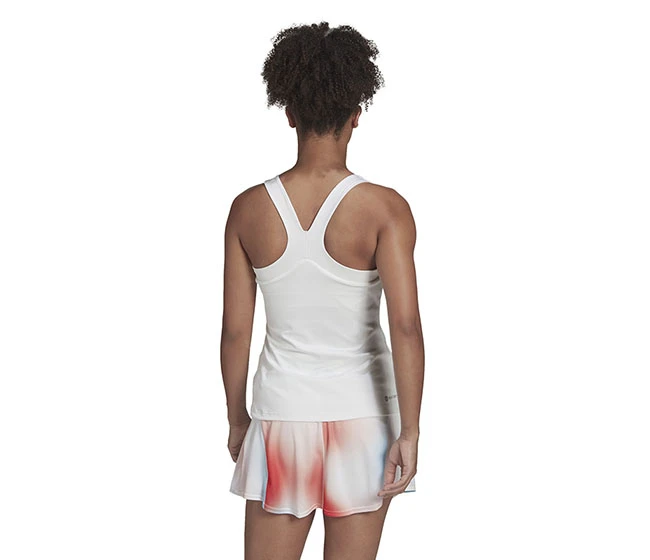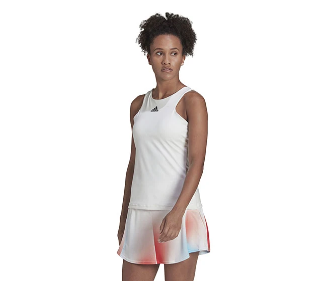 Take your game higher in this slim-fitting adidas tennis tank top. Part of a Gameset collection filled with on-court essentials, it has a soft Y-elastic strap that gives your shoulders plenty of room to wind up for shots. HEAT.RDY keeps you fresh on the hottest days so you can play your all-action game without wilting. The integrated bra adds comfort and confidence.