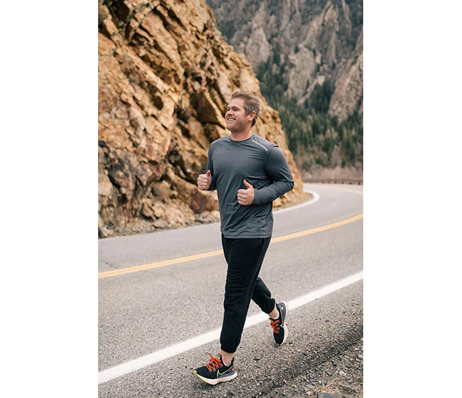 The BloqUV 50+ UPF men’s Jet Long Sleeve Tee is sun protection to be worn alone, as a base layer, swim shirt, rash guard or beach cover up. The long sleeve performance SPF tee offers comfort, freedom of movement and is perfect for running, biking, swimming, boating, skiing, tennis, golf, working out or just looking sharp at leisure.