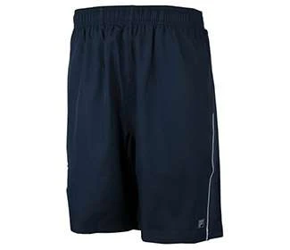 Tennis team shorts with elastic waistband with inside drawcord, side seam pockets and contrast color piping on outside seam (non white version).