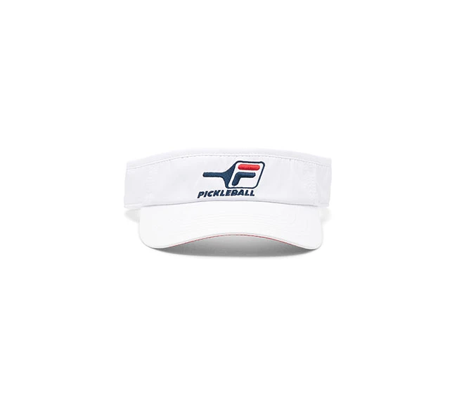 Lightweight, breathable performance visor features adjustable velcro closure, FILA F-Box at center front and a pre-shaped bill. Contrasting undervisor and ‘FILA Pickleball’ embroidered across the front.