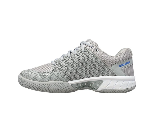 Looking for a court shoe that’ll enhance your game? K-Swiss is the first to bring a shoe specifically designed for Pickleball to the market. Considering Pickleball is one of the fastest growing sports in the United States, you’ll need to have something comfortable, lightweight, and effective to wear on the court. K-Swiss’s Express Light Pickleball has all the answers, and is customized with the K-Swiss Pickleball Logo and a Pickleball sock liner. This pair of shoes is best played on a hard court surface.