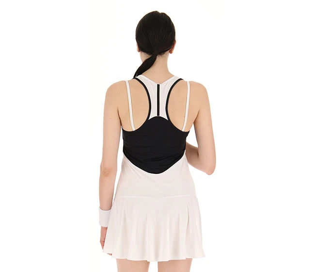 The Lotto Top Ten IV Dress is the piece you need to express your best on-court sports with elegance! Very light and soft, the fabric of this dress will offer you unequaled comfort as well as excellent freedom of movement. Thanks to the Deep Dry technology, favoring the rapid evacuation of perspiration, you will stay dry during your entire performance on the court. Its racer back will ensure excellent support, as will the bra that is coupled to it to be always comfortable in your efforts.