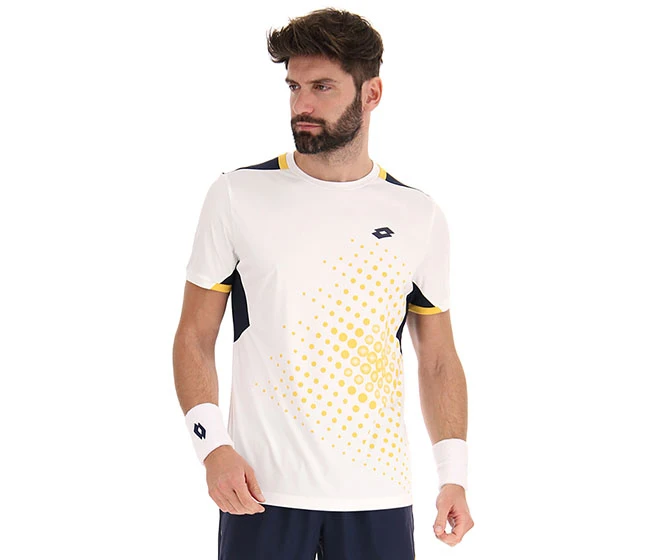 Power up your game with the Lotto Men’s Top Ten IV Graphic Tee. This slim fit performance shirt has Lotto’s Deep Dry technology for ultimate moisture wicking and a bold print that will make a statement on and off the court. The Lotto logo is featured on the left chest.