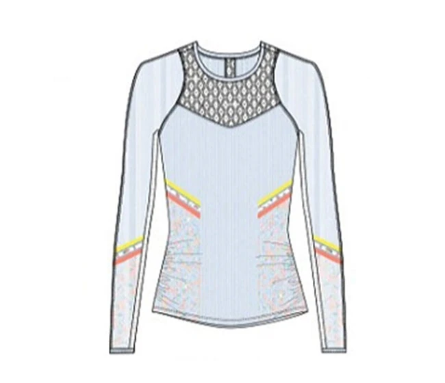 Power through a chilly match in the Lucky in Love Chambray Blossom Long Sleeve Top. This crewneck top has mesh on the underside of the sleeves for ventilation, and racerback seam lines help keep it feeling comfortable while you swing big. It also features an all-over print with pops of color, a shaped hemline and moisture-wicking performance.
