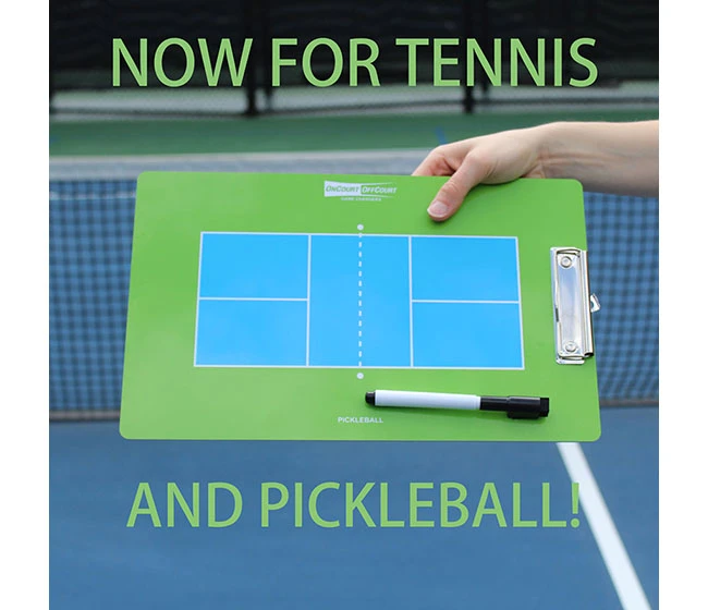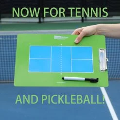 The 9″ x 16″ dry-erase Coach’s Clipboard is a lifesaver when it comes to teaching players where to move and hit on the court. Clip papers on one side and use the tennis court for diagrams on the other. Included dry-erase marker attaches with Velcro.