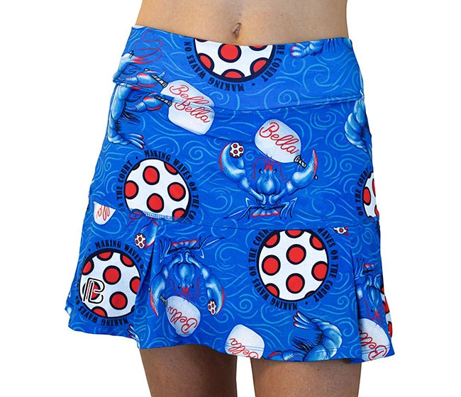 Featuring vivid shades of blue and pops of lobster red, this under the sea inspired print is sure to make waves on and off the court. Showcased throughout this print you’ll find lobsters with paddles in hand and pickleballs which include the text, ‘making waves on the court’. Bring the commotion of the ocean to your game and shop this print today!