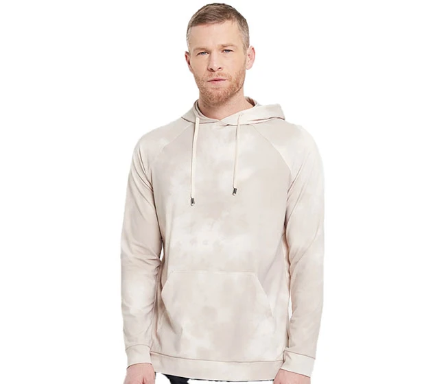 Distressed in design, determined in results; the Hicks hoodie has your back in fashion and functionality. made from our signature STRETCHknit fabric that offers a super soft, 4-way stretch, two-yarn moisture-wicking and easy care. Finished with front pouch and elasticized cuffs. STRETCHknit is a combination of a weighted polyester(77%) and spandex (23%) along with a brushed interior for ultimate softness. This fabric blend was specifically made to keep you warm while still allowing you to be mobile while performing.